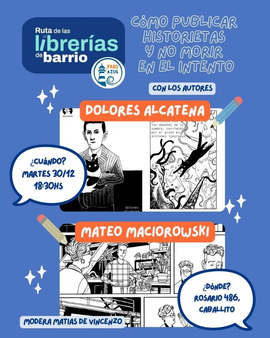 La librería ubicada en Rosario 486 (ciudad de Buenos Aires) será sede de un evento en el que Dolores Alcatena y Mateo Maciorowski disertarán acerca de los procesos de creación de una historieta hasta su publicación. Pasando por el diseño de los personajes, la historia narrada y las técnicas de dibujo empleadas además de contarnos sobre la experiencia de adentrarse en el mundo editorial. Coordina Matías DeVincenzo y la entrada es libre y gratuita.
