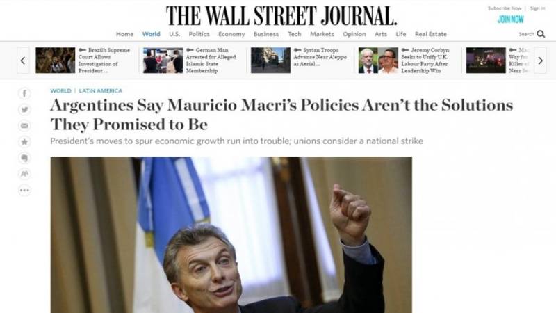 Uno de los diarios más importantes de Estados Unidos, The Wall Street Journal, realizó un duro editorial contra las políticas de Mauricio Macri en Argentina.